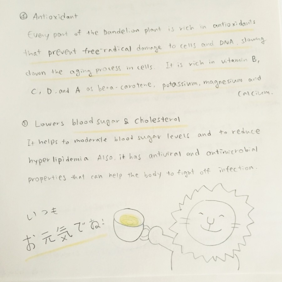 : 공원, 길가, 보도블럭 틈새까지.. 어디에서나 흔한 이 풀들은 보통 '잡초'로 불리우고, 뽑아 없애야 할 대상으로 여겨진다. 그러나 오랜 역사에 걸쳐, 전세계 다양한 문화권에서 이 풀들은 모두 '약초'로 쓰여왔다. 해독작용, 면역력 증진, 혈액순환 촉진, 항산화 효과, 소화 촉진 등 여러 이로운 효과를 기대할 수 있는 '풀의 지혜' 블렌딩 허브차는 푸근하고 편안한 향으로 하루 중 어느 때나 부담 없이 마실 수 있다. 우려내고 난 잎은 건강한 피부를 위해 스크럽, 찜질 등으로 활용할 수 있다.